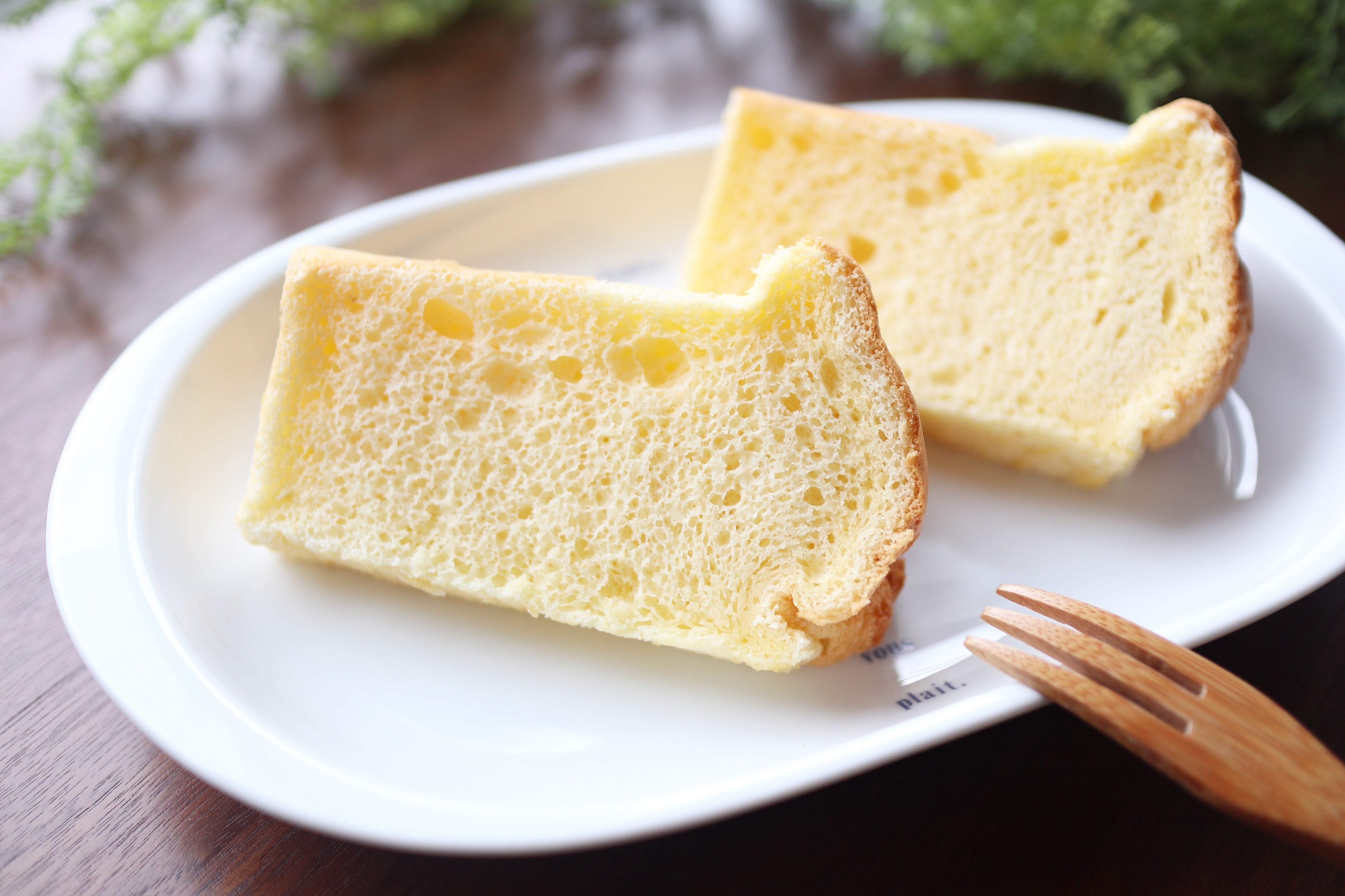 ふんわり、しっとりとした食感が魅力の「1番人気のプレーンシフォンケーキ」は、贅沢に比良利助の卵を使用し、職人の手によって丁寧に仕上げられています。