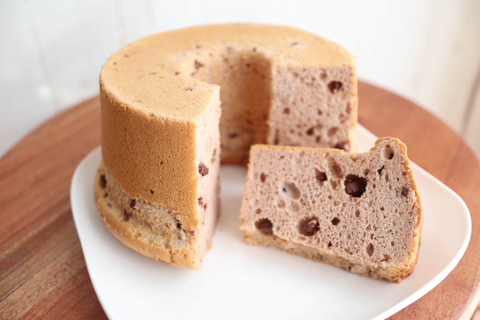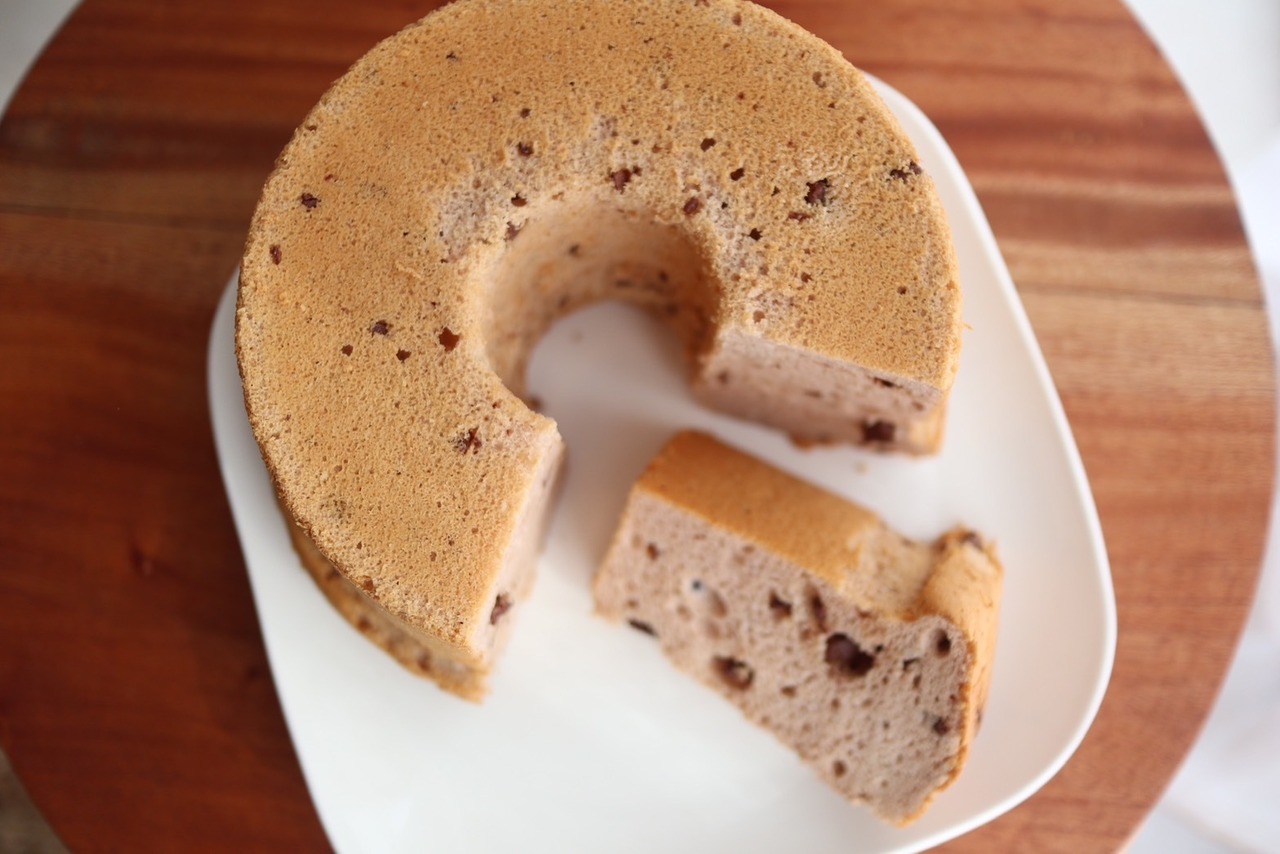 「季節限定 ストロベリーショコラ」は、たっぷりのいちごピューレと大きめのザクザクチョコレートを贅沢に使用した季節限定メニューの中でも1番人気のシフォンケーキです。